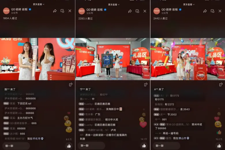 在线下,QD瓷砖全国终端门店全面响应,针对新品系列推出超级让利活动,以高颜值产品+超惊喜价格+超省心的服务,真诚让利给消费者。线上,QD瓷砖推出更多创意玩法,如以年轻人喜欢的方式举行了多场线上直播活动,实现精准引流,直播间讨论热度超15万人次,瞬间引爆流量。