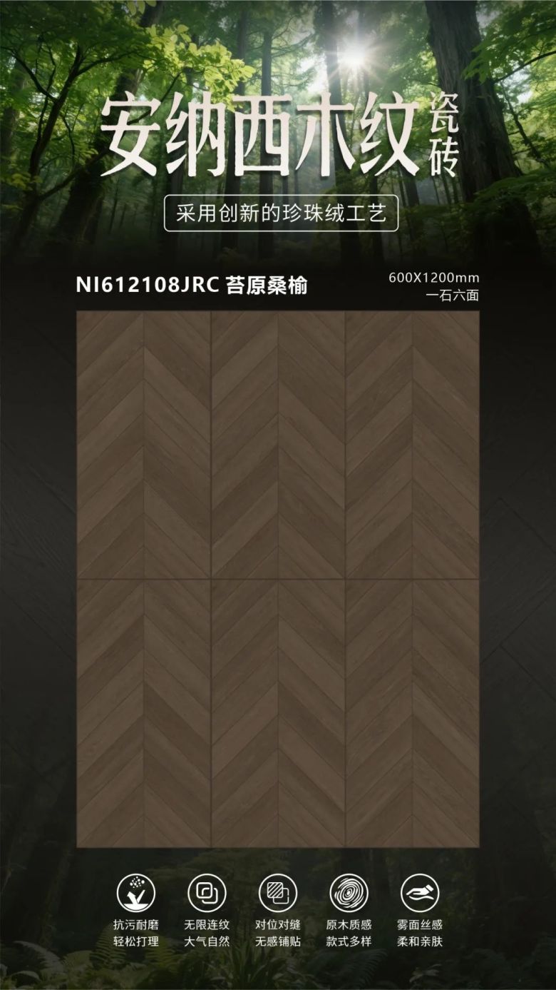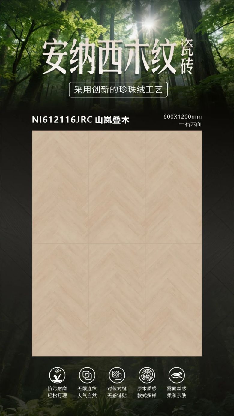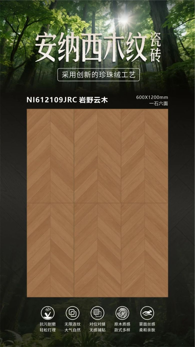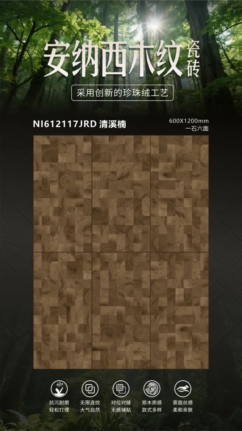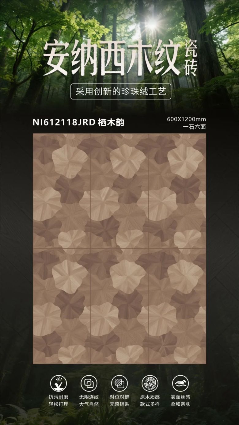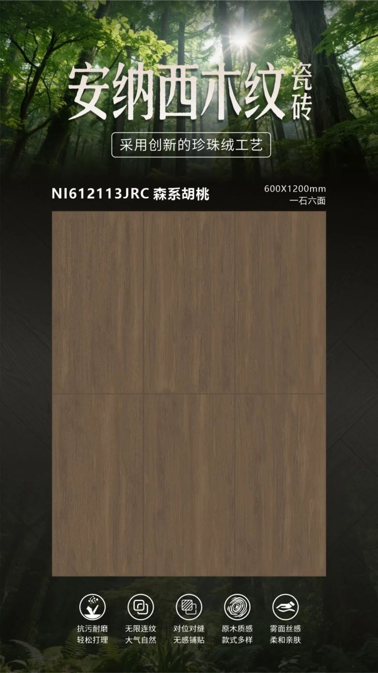 颜值在线,实力满分。能强瓷砖安纳西木纹超多款式选择,产品抗污耐磨性能显著优于传统木纹砖,应用主打一个省心又省力!