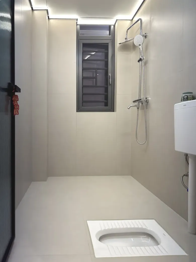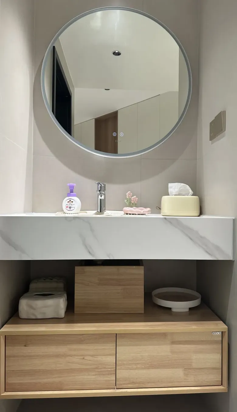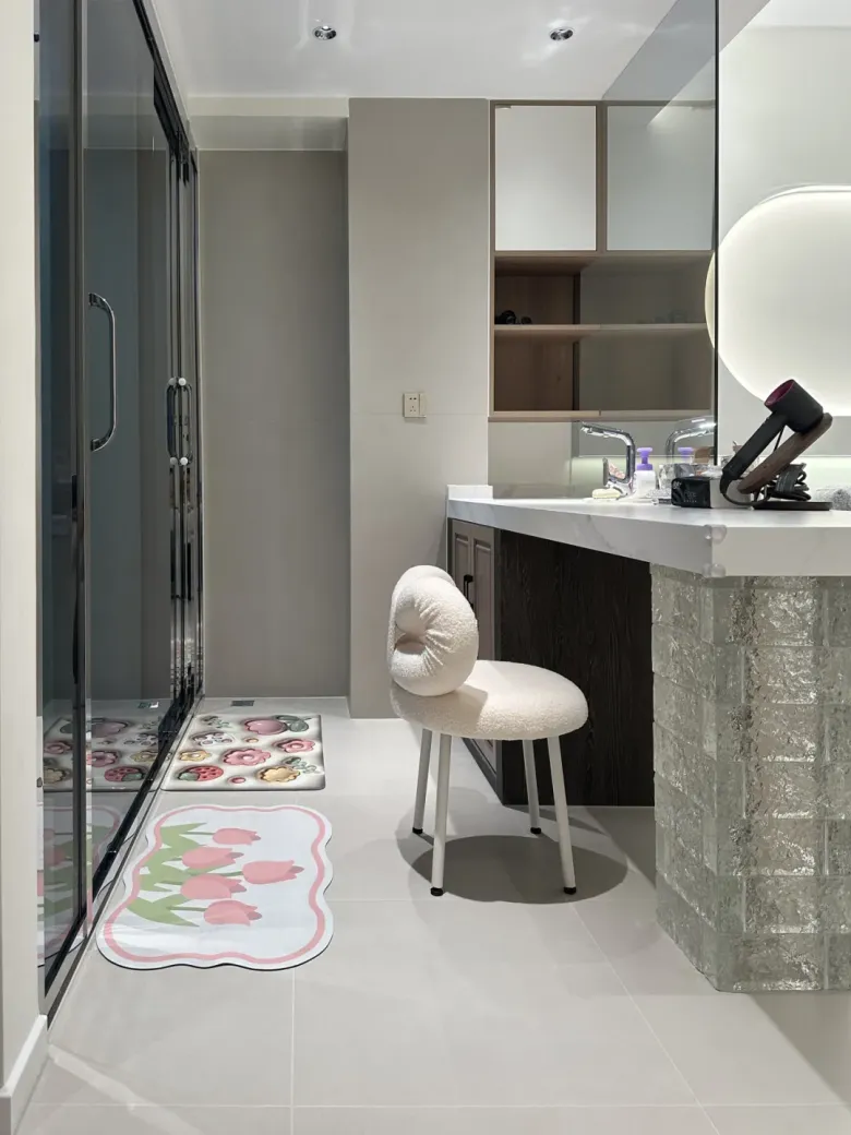 公卫的设计注重美观与平衡,将卫浴与洗漱台划分开来,保留了空间的独立性。卫浴部分继续沿用【素奢·微水泥】系列——阿特拉斯浅灰,采用墙地一体化设计,使其具备良好防滑性能的同时,空间风格也更加统一,散发温馨质感;洗漱台以简约而大气的设计,令台面宽敞且易于清洁,让日常打扫不在话下。