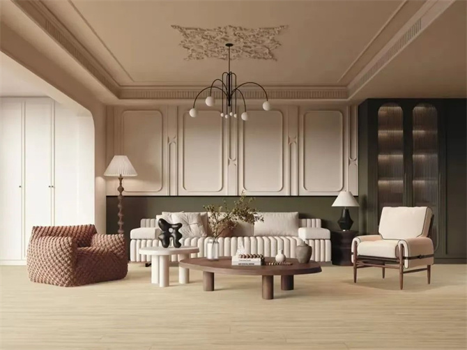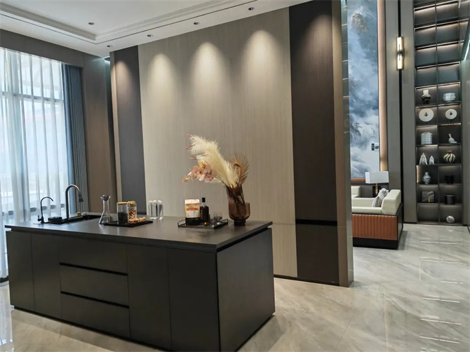 而K金砖系列今年也又升级做了不少新品,艺术性背景墙依然保持着,但整体空间应用更内敛,岩板K金的融入则更显轻奢,不张扬,色彩更纯正,触感更温润,搭配更自然,更现代、时尚,年轻化。