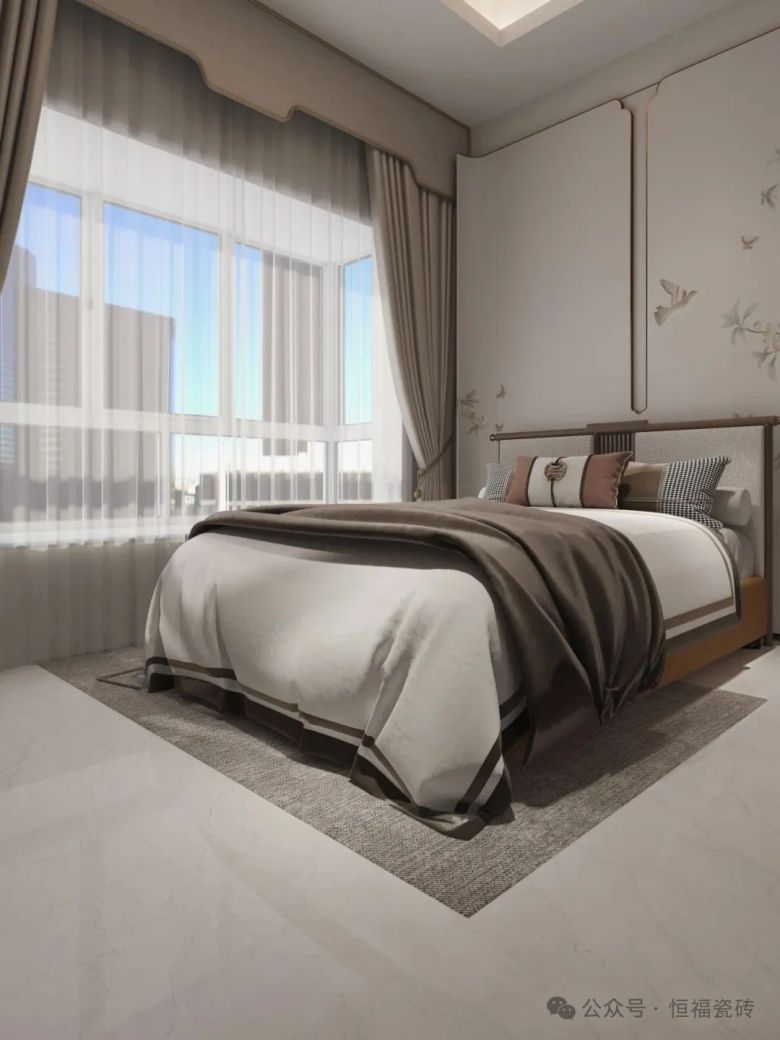▌ 三透」生辉· 光影入画来|突破性复合釉面技术,赋予产品超高透光度。釉面似江南春水,透亮澄澈,纹理在光影下灵动流转,像烟雨中的湖面波光。阳光洒入,瓷砖熠熠生辉,整个空间都因这透亮,多了几分江南水乡的灵动与诗意 。