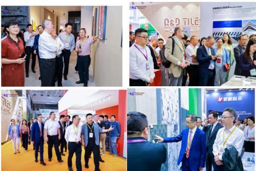 佛山市人民政府副市长 陈新文、中国建筑卫生陶瓷协会会长 缪 斌、中国陶瓷工业协会理事长刘 挺、广东省商务厅服务贸易与商贸服务业处四级调研员 林 宏、佛山市商务局副局长 何满初 、佛山市贸促会党组成员、副会长 葛振海 、佛山市工商联副主席 童全庆、禅城区人民政府副区长薛佩华、中国建筑材料流通协会秘书长陈媛、吉尔吉斯斯坦驻广州总领事馆总领事  Mr. Khomeyni E.  霍梅尼先生、柬埔寨驻广州总领事馆  Mr.LAO NGUONENG劳恩英 先生、禅城区经济和科技促进局局长 陈娴、禅城区委宣传部常务副部长、区文化广电旅游体育局局长 杨 涛、禅城区南庄镇副镇长邓伟君、广东东鹏控股董事长、佛山中陶城集团董事长何新明、广东星星投资控股有限公司总裁 陈伟荣、中国陶瓷工业协会瓷砖美缝技术专业委员会会长黄章林、中国陶瓷工业协会瓷砖粘贴技术专业委员会会长 赵振林、淄博市传统产业发展中心党委书记、主任 唐海军、福建省轻工业联合会执行会长、福建省陶瓷行业协会书记 陈建新、佛山市陶瓷行业协会秘书长 潘勇文