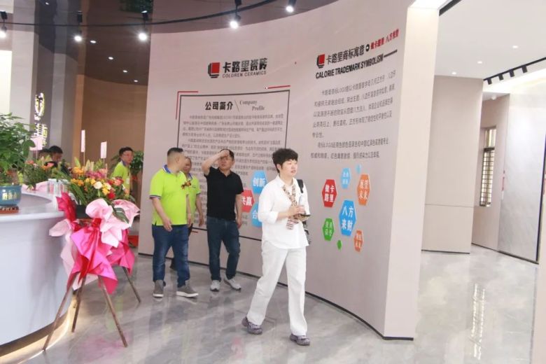 在激动人心的启动仪式上,裕辉集团董事总经理潘文权,裕辉集团销售总经理刘乃桐,裕辉集团生产总经理苏忠勇、裕辉集团董事长助理 罗伟照、企业销售总经理张志勇、卡路里品牌销售经理罗波侨、王亚男及特邀嘉宾一同剪彩,宣告卡路里瓷砖正式启动!