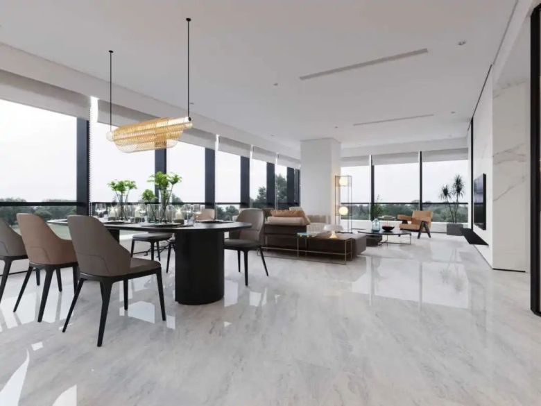 密缝铺贴不仅可以让无限连纹瓷砖的空间效果更加浑然一体,还能让纹理的衔接更加自然真实。缝隙控制在<0.5mm内,让瓷砖连成一整片,有效减少拼接,消除缝隙带来的割裂感,打造自然纹路的连贯之美,在有限的空间内实现无限延伸的视觉效果。