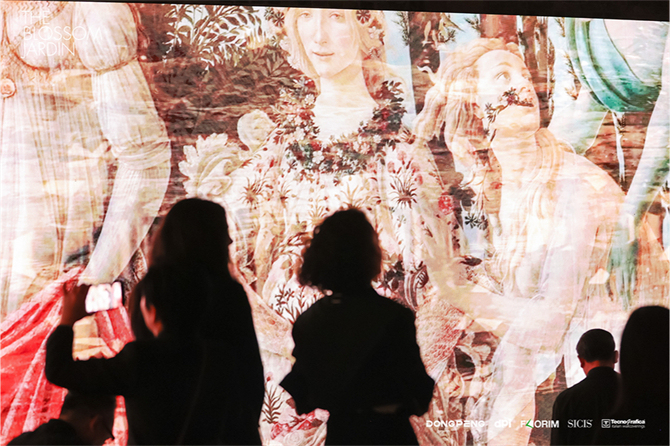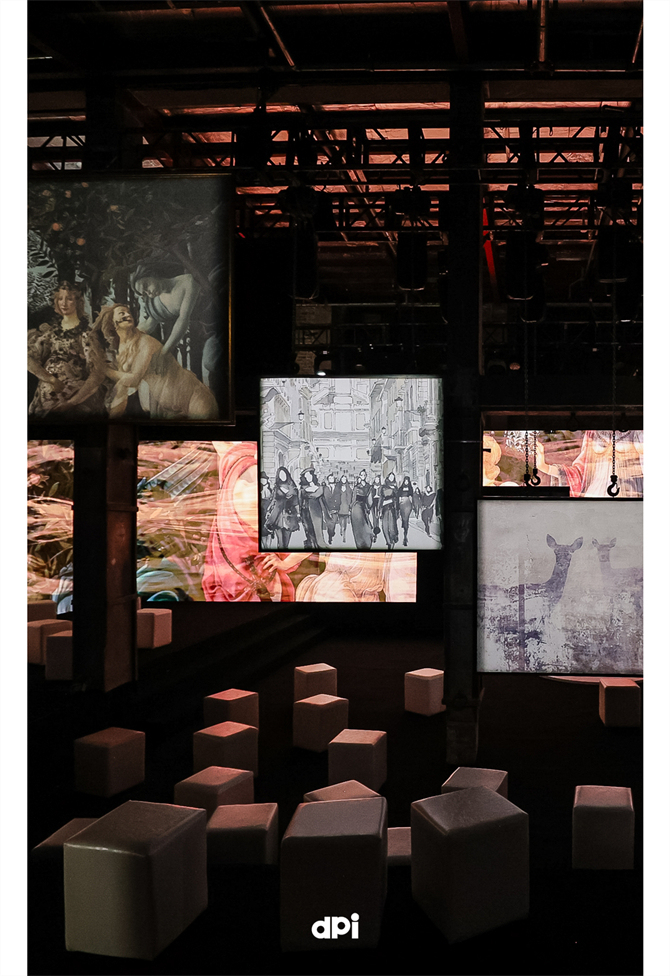 在极具视觉冲击力的背后,是意大利人文风格的建筑、线条、光影与瓷砖肌理、马赛克色彩、壁纸图纹的互相呼应。正是数字艺术独有的魅力,打破了空间的限制,让艺术空间的视觉体验更加丰富和个性化,将嘉宾们带入意式的美学世界。