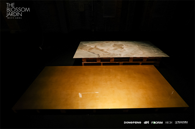 发布会现场的沉浸式全黑艺术空间里,以美术馆藏品的形式作为主视觉,配合数字光影投射作品与现场表演,将FLORIM,SICIS和TECNOGRAFICA的奢华质感予以呈现,让现场每一位嘉宾都能感受到意式设计语言下的纯粹美学。