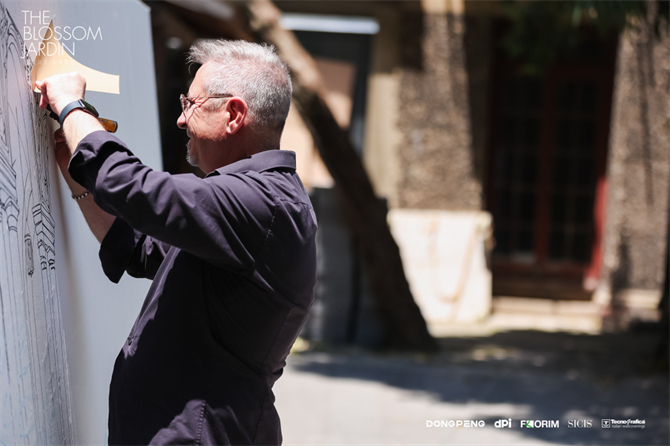 ○设计师兼创意总监Marco Fontana现场创作壁纸图纹