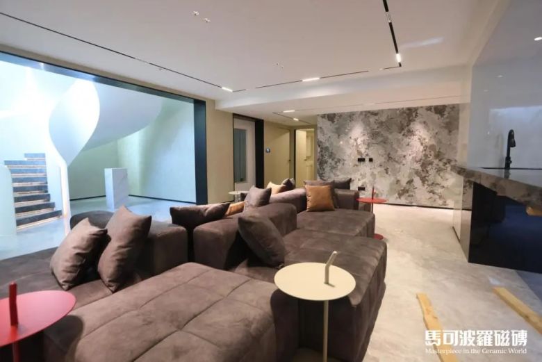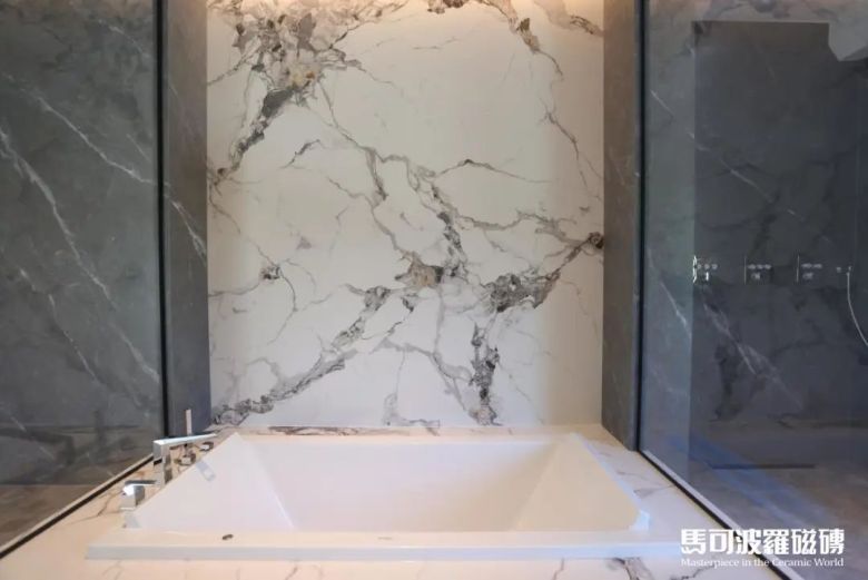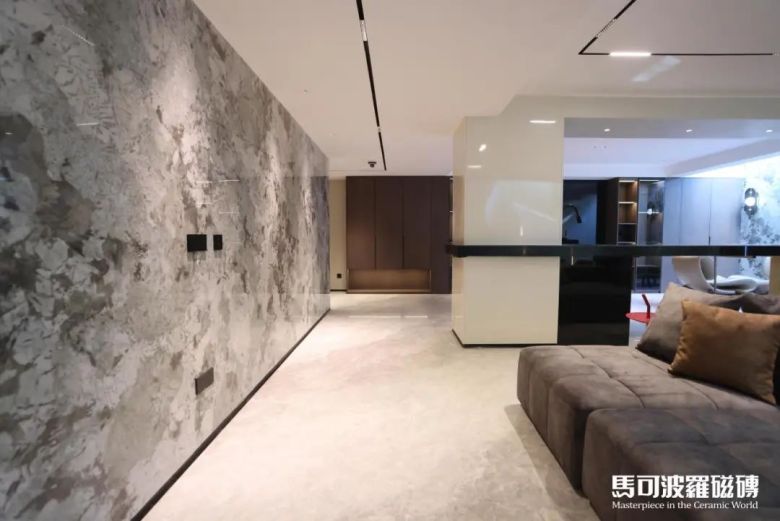 马可波罗岩板撒哈拉黑作为装饰,通透的黑色质感,给人以稳重和高贵的感觉,白色线条穿插其间,以美的延伸,打造质感生活空间。