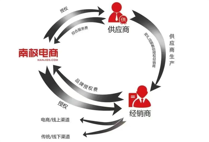 南极人称这种“品牌授权”模式,叫做“NGTT”南极人共同体商业模式。这个所谓的“共同体商业模式”还包括,南极人为被授权贴牌商整合终端经销商资源。