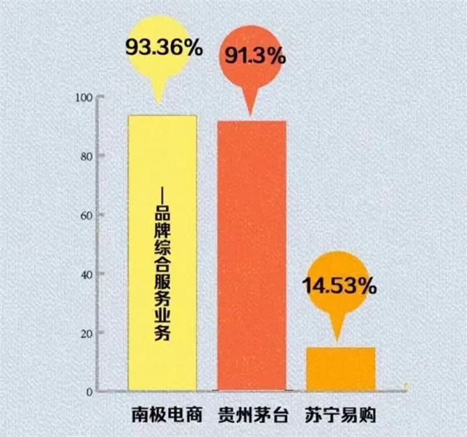 其中,2019年一年时间,品牌授权相关营收合计约为13亿元。期间,南极人更是以骇人听闻的93.36%的毛利率,成为A股电商“毛利之王”,超过了贵州茅台。