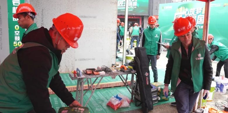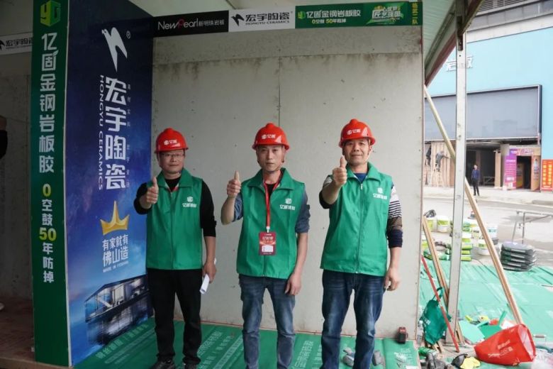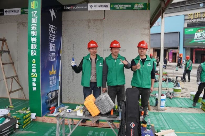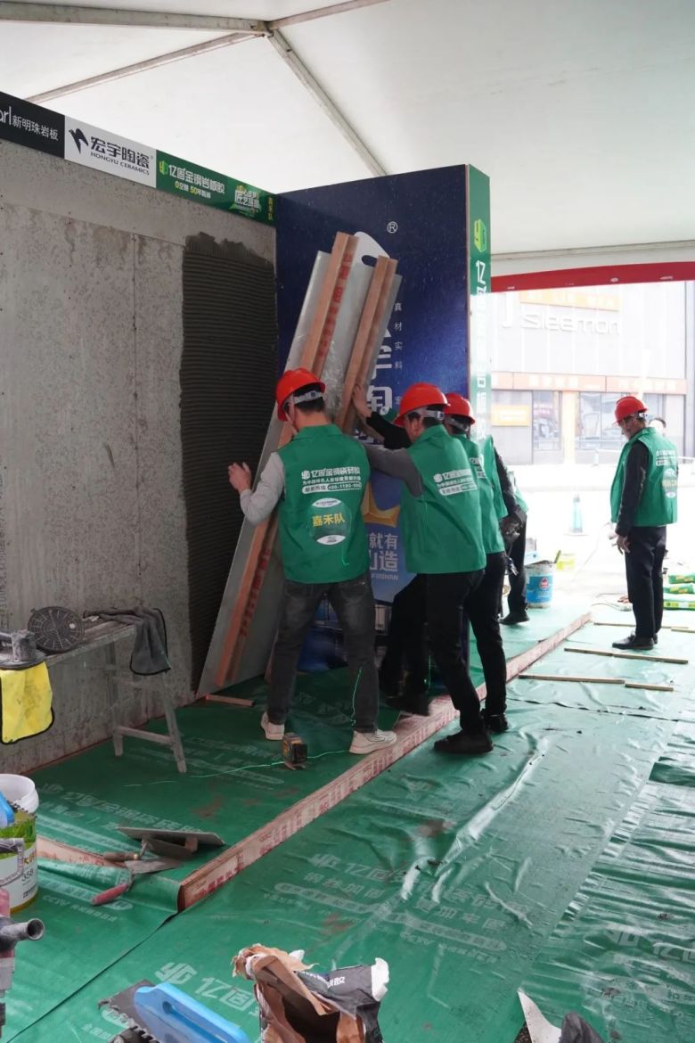 湖南亿固金牌工匠以专业执着诠释赤诚匠心,以行云流水的操作展现高超薄贴技艺,他们用实力与行动为现场及云端观众,带来一场酣畅淋漓的“年度对决大战”。