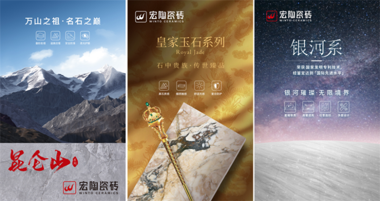 宏陶的技术创新始终围绕市场需求展开。公司构建了覆盖全品类、全规格、全场景的产品矩阵,形成12+产品线、超1000款细分产品,精准触达零售、整装、工程定制等全渠道。从银河系、昆仑山、皇家玉石等明星系列到岩板、高光臻石、雅奢系列等高值产品,实现了从单一品类到空间解决方案的跨越式升级。