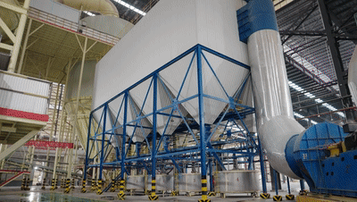 走进球磨车间,连续式球磨机24小时自动运转,将原料精准研磨成成分均匀的浆料。AI实时调度原料仓,一旦出现偏差立即自动调配,保障浆料成分的稳定性。在制粉车间内,通过智能恒定能量输出,保障粉料烘干均匀,同时高效回收窑炉余热,其节能率达15%以上;粉尘浓度超标时,抽风机便自动启动回收程序,实现粉尘高效循环利用。