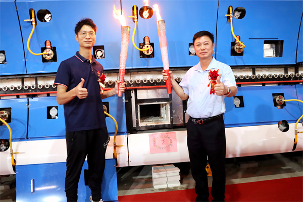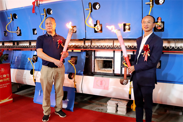 吉时至,众嘉宾手持火炬,带着美好的祝愿,为窑炉点燃“盛产之火”。熊熊燃起的赤焰,与当前低迷的市场形成鲜明反差,代表着圣晖企业逆市突围、奋战向上的决心,奏响产能扩张、市场开拓的号角!