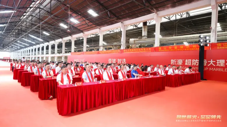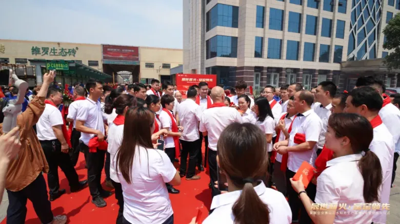 活动现场,佛山市陶瓷行业协会秘书长尹虹、佛山市家居产业联合会执行秘书长杨志华、昊晟企业总经理杜湛权、昊晟企业制造事业部总经理余昭啟、昊晟企业财务管理中心总经理罗燕清、昊晟企业品牌管理中心总经理游俊、昊晟企业罗永辉、昊晟企业罗永鹏、科达制造股份有限公司制造总经理杨学先,以及十多家协会媒体,战略集采供应商,还有昊晟企业的家人们,共同出席了本次点火仪式,一起点燃昊晟辉煌之火,奏响昊晟企业绿色智造强音。