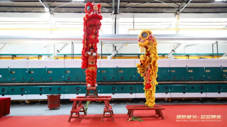 活动进入下半程,迎来了传统佛山非物质文化遗产醒狮表演。昊晟企业总经理杜湛权与昊晟企业制造事业部总经理余昭啟分别为雄狮点睛,赋予狮子生命与活力,寓意着开启智慧、点亮希望,也预示着阳光陶瓷生产基地6号窑炉红红火火,产销两旺。在雄狮跃动的节奏中,昊晟企业罗永鹏、昊晟企业阳光工厂生产经理李军勇接过狮子传递的好兆头好运气,这预示着昊晟企业在新里程上如雄狮一般,充满力量和活力,势不可挡,赢领市场。
