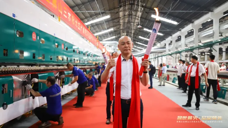 昊晟企业总经理杜湛权(右9)、科达制造股份有限公司制造总经理杨学先(左9)、昊晟企业制造事业部总经理余昭啟(右8)、昊晟企业财务管理中心总经理罗燕清(左8)、昊晟企业品牌营销事业部总经理游俊(右7)、昊晟企业罗永鹏(左7)、科达制造股份有限公司国内营销总监裴树元(右6)、佛山市金博精自动化机械设备有限公司总经理李记养(左6)、佛山市富健达机械总经理彭乃勇(右5)、佛山市南海区标鼎建设工程有限公司总经理杨辉刚(左5)、昊晟企业阳光工厂生产经理李军勇(右4)、阳光产品拓展部总经理罗就泉(左4)、昊晟企业几何工厂生产经理柯冬求(右3)、昊晟产品拓展部总经理关宗传(左3)、白金事业部总经理温小玩(右2)、佛山市竞能翔科技有限公司总经理徐州(左2)、佛山市金起航电力安装工程有限公司总经理何满胜(右1)、佛山市昌益广建筑劳务有限公司总经理陈常(左1)共18位领导嘉宾共同手持火炬,为佛山三水阳光生产基地6号窑炉点火。熊熊燃烧的焰火,象征着力量、希望和创造力,意味着昊晟企业正式开启新篇章,向更高的目标迈进。