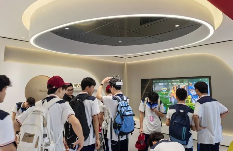 当传统制造业遇上元宇宙,会擦出怎样的火花?戴上VR眼镜,同学们瞬间“穿越”到金巴利打造的虚拟展厅。