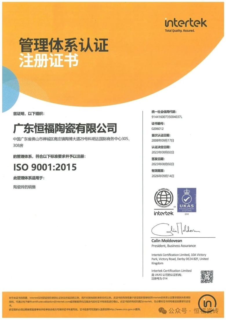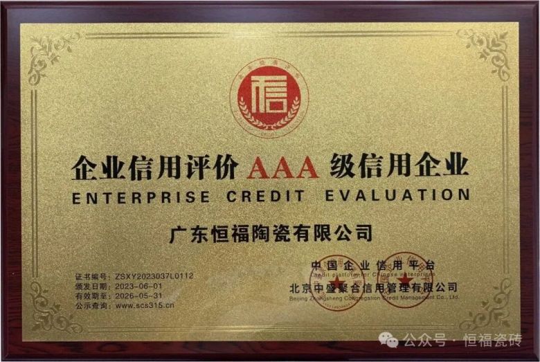在过去的岁月里,恒福瓷砖凭借着不懈的努力与追求,先后荣获了诸多荣誉与奖项。