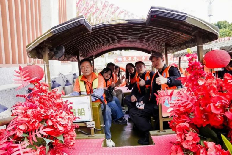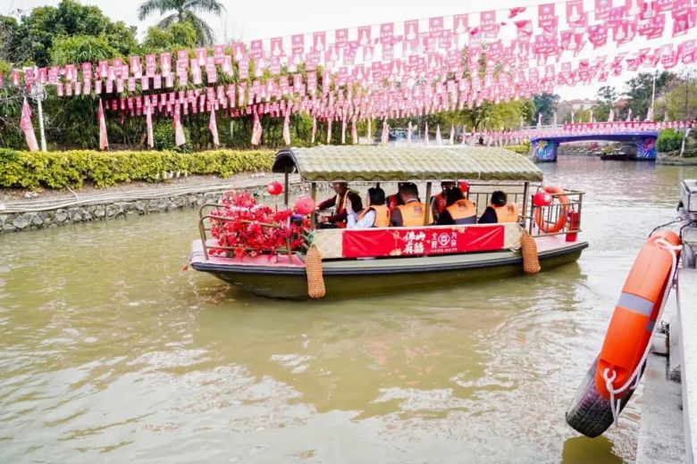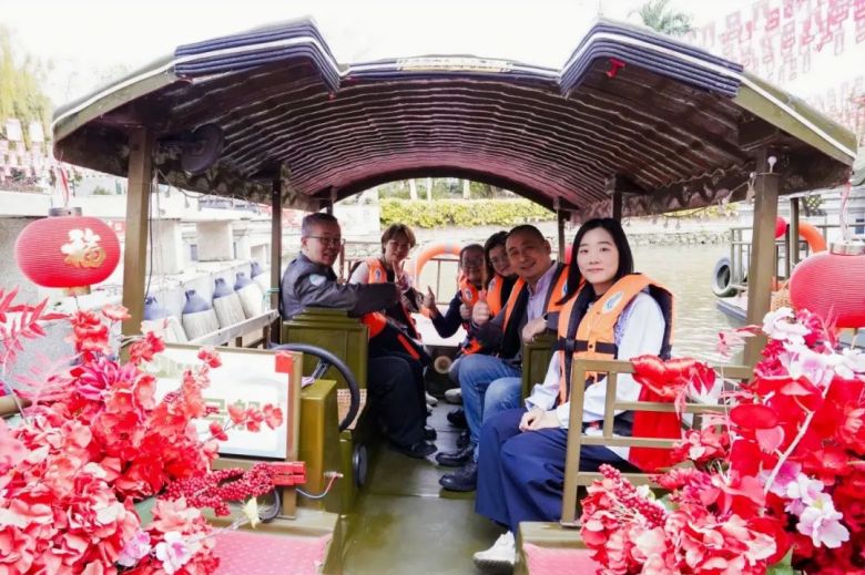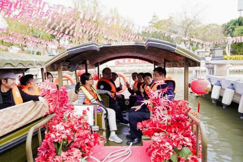 作为本次春茗活动的亮点环节之一,新明珠集团特别安排了媒体朋友们乘船游览紫南村,亲身感受南庄水乡的独特魅力。乘船穿梭于碧水绿荫间,媒体朋友们不仅领略了水乡风光,更在轻松惬意的游船过程中畅谈交流,进一步加深了友谊与互动,为活动增添了温馨愉快的氛围。