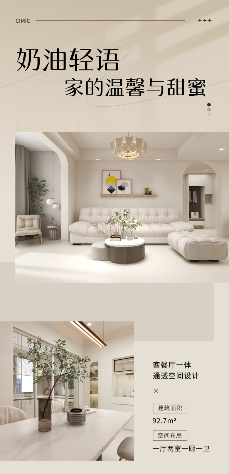 奶油系风格因其特殊的魅力依旧广受欢迎,这种风格融合了现代极简的空间感和法式浪漫雅致的情调,因而受到年轻人的广泛喜爱。奶油系风格以奶咖色为主色调,采用低饱和度色系搭配,营造出一种被细腻奶油包裹的温馨氛围,让整个家有一种甜而不腻、温柔到骨子里的居家氛围。