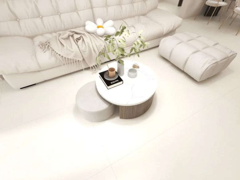 客厅空间的配色、材质、灯光及软装搭配,都展现空间的柔软,明亮纯粹,触感舒适,休闲感十足,轻松自在中又有慵懒温柔的感觉。客餐厅铺贴斯米克新砂岩米,还原了天然砂岩的质感和纹理,呈现出细腻而自然的触感,为空间整体色调柔和的色调做铺垫。