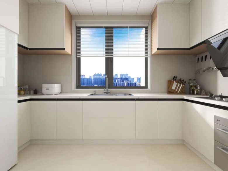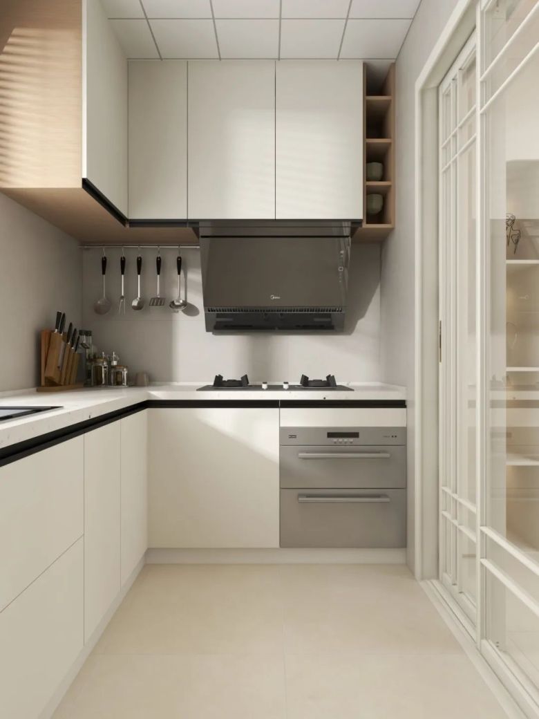 厨房的设计注重实用性和美观性的结合。整体式L型的设计,橱柜与墙地砖采用同色系搭配,营造出一种让人无法抗拒的整体性和素净感。地面铺贴斯米克蓝莲花浅米,墙面则是斯米克蓝莲花月灰,搭配再一起增添层次感的同时,也加入了更多的温暖和舒适感,让厨房不仅是烹饪的地方,也是享受生活的空间。