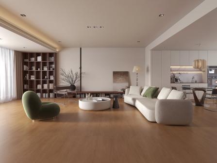 GDI艺术木纹始终坚持从自然本源中汲取创作灵感。在此次推出的胡桃木系列中,品牌设计团队亲赴北美林场,深入观察木材生长肌理与光影变化,最终精炼出晓风、兰亭、云栖、春木、叠影柚木和朗月六款花色,不仅还原了胡桃木的贵族气质,更赋予每一条纹路以诗意的叙事感。