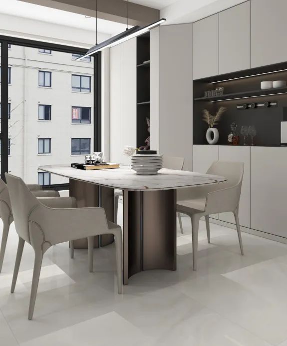 开放式餐厅的设计有一种相辅相成的呼吸感