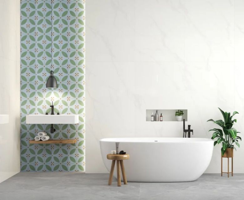 浴室选用两片竖贴到顶的HD61310卡拉拉白