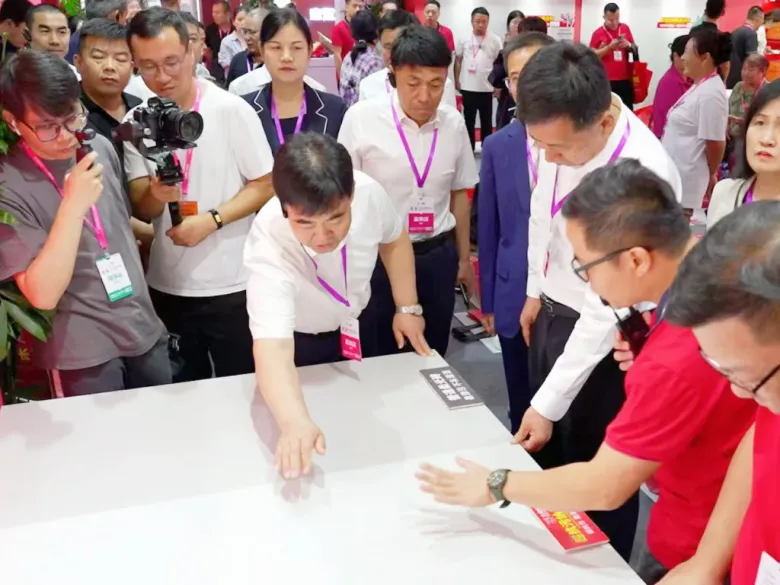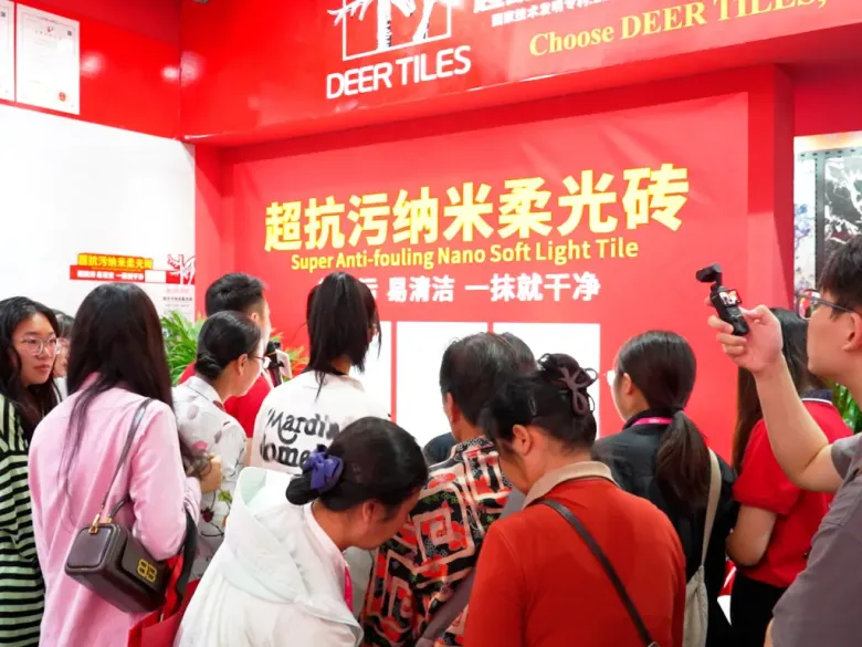 作为超耐磨大理石瓷砖发明者,大角鹿始终走在技术创新的前沿,不断迭代升级超耐磨技术,为全球消费者提供高品质的瓷砖。本次展会,大角鹿带来最新的“王炸技术”产品——大角鹿超抗污纳米柔光砖,再次成为了全场瞩目和行业热议的焦点,众多经销商、业界同行及消费者纷纷驻足观看,亲身体验大角鹿的超抗污性能。