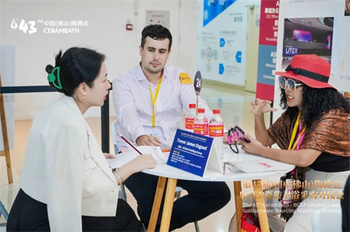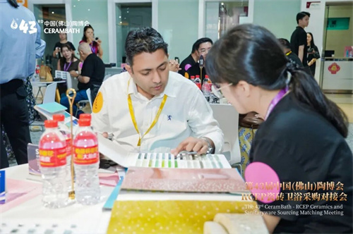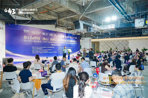 在“第43届中国(佛山)陶博会-RCEP瓷砖卫浴采购对接会”中,多位来自国内陶瓷卫浴品牌的领军人物及RCEP成员国的建筑材料采购商齐聚一堂,精准对接各方需求。