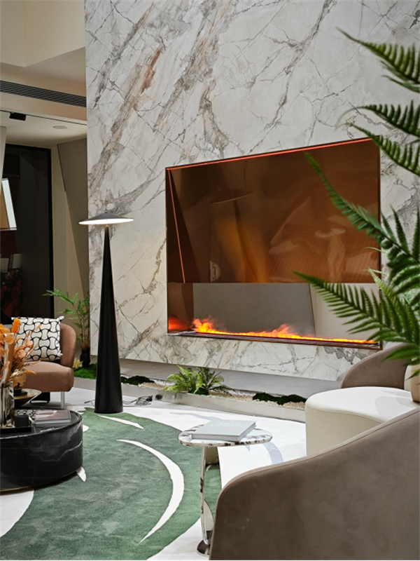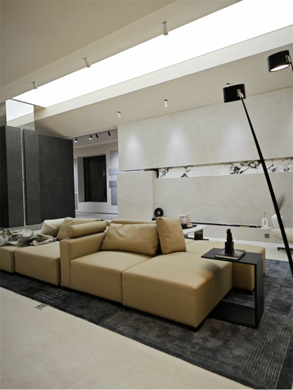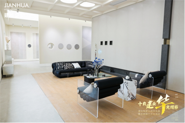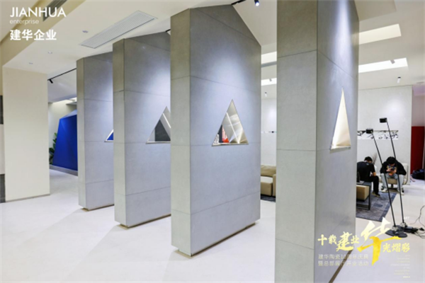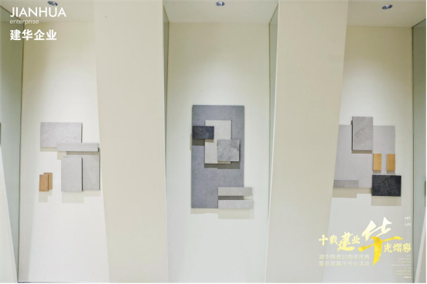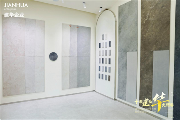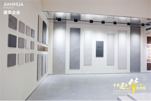 展厅中的设计由建华团队独立完成,其设计风格以轻奢路线为主。展厅中工艺仿古砖的应用尤为突出,每一款都独具匠心,充分满足了不同客户的个性化需求,产品不仅设计新颖,品质卓越,更体现了建华企业在陶瓷行业中的创新实力和精益求精的匠心精神。