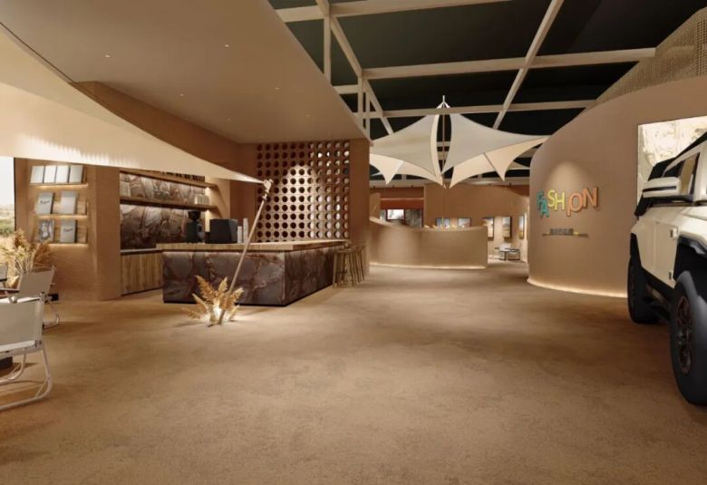 「野奢·崎境」主题展馆通过山野元素的当代转译,打造一个兼具自然野趣与时尚质感的沉浸式体验空间。
