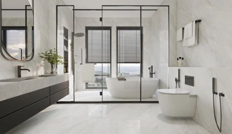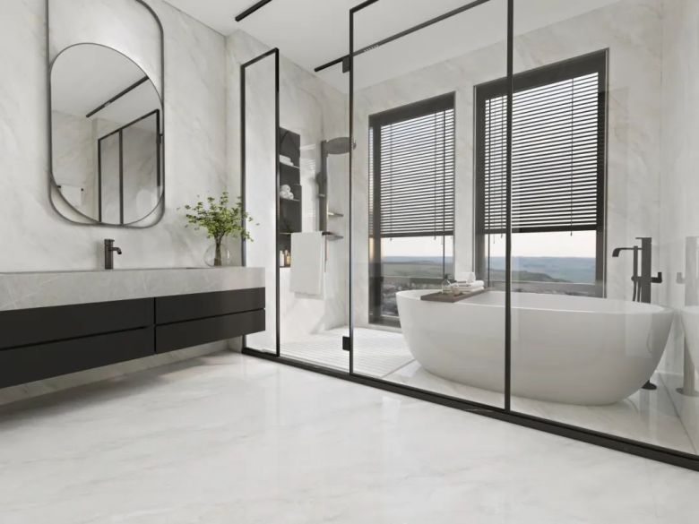 两片垂直铺贴即可覆盖层高2.7米墙面(如厨房、卫生间),彻底告别传统规格的切割损耗,对比750×1500mm,其铺贴综合成本降低15%,人工效率提升30%。