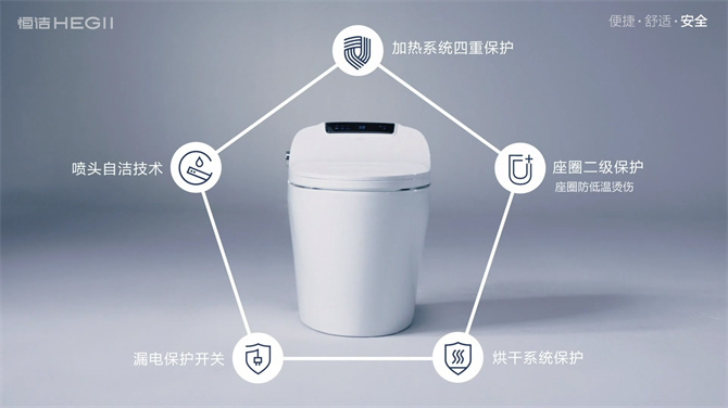 智能坐便器产品的安全使用问题,是3C认证严格把控的要点。对于安全,恒洁始终秉持“不将就”的态度,致力于为消费者提供安全、可靠的智能坐便器产品。