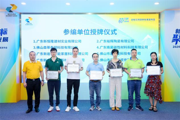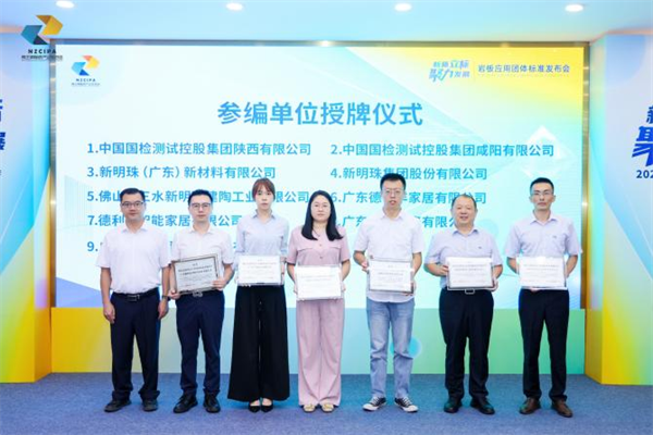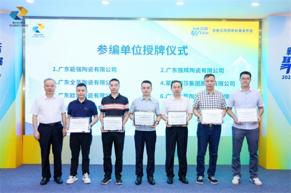 在参编单位授牌仪式上,领导们为25个参编单位授予牌匾,给予认证。在标准的制定中,参编单位提供了专业的知识和技能,他们以丰富的经验和深入的技术见解,确保了标准的科学性与可行性。同时,参编单位也提升了标准制定的质量,他们通过严格审核和把关,增强了标准的公信力和认可度。未来,相信在参编单位的共同努力下,将会更好地推动六项陶瓷岩板应用团体标准的广泛应用。