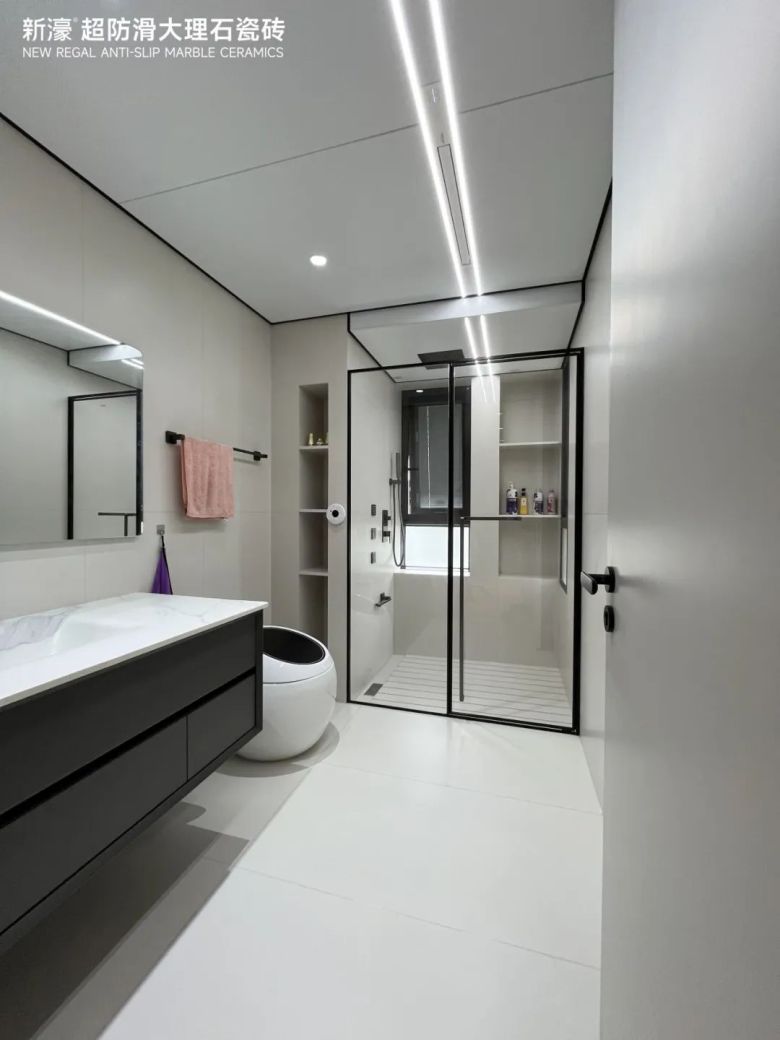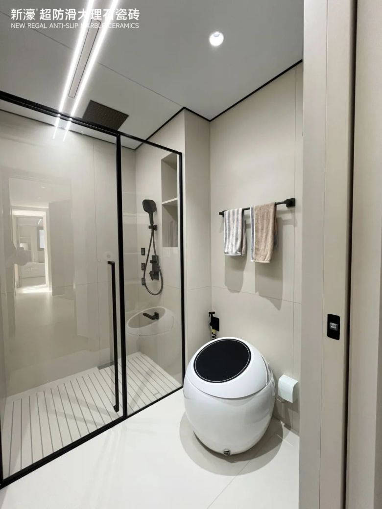 据悉,家中的卫浴间均延用新濠【二代超防滑天鹅绒】,自然入微的触感,硬核防滑的性能,湿态状态下,达到国标A级防滑(A≥14°),共同编织着家的安全与舒心,归家顷刻,得以沐浴身心,释放过多负荷,享受自然与秩序的惬意时光。
