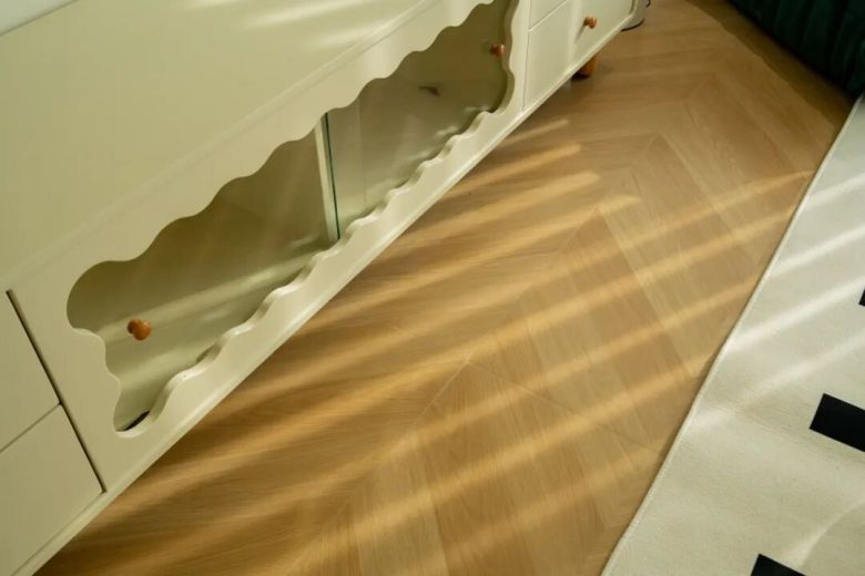 它不仅赋予空间复古松弛的质感,更以多样化的版面设计模拟真实木纹的生长痕迹——这是一种高度克制的浪漫,既服务于整体视觉,亦守护日常生活的实用需求。