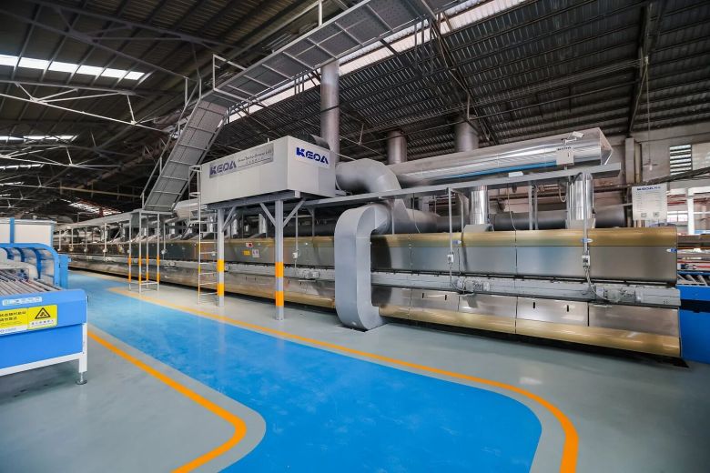 28号窑生产线及其所代表的管理体系,共同构成了旭日集团独具竞争力的综合制造优势。整线汇聚4台科达明星压机、六层干燥器、Neo-Arc系列新型窑炉、智能储砖系统、全自动抛光线及自动包装线系统等顶尖装备,实现了从压制成型到智能储运的全流程数字化闭环。产线聚焦智能化、高品质、多工艺三大核心,符合5A级别的技术标准与制造要求,日产可达15000㎡。它不仅以“余热零排放”、“智能云控”等技术树立了绿色智造典范,更通过科达智能储砖系统与码包机器人,构建了高效柔性化生产模式。这一切卓越硬件效能的发挥,植根于白兔工厂深厚的“精益内核”。公司持续推进“5S管理”与“安全意识”落地,确保生产的高度规范、整洁与安全,实现硬装备与软实力的完美融合,真正走出一条创新驱动、数字赋能的高质量发展道路。
