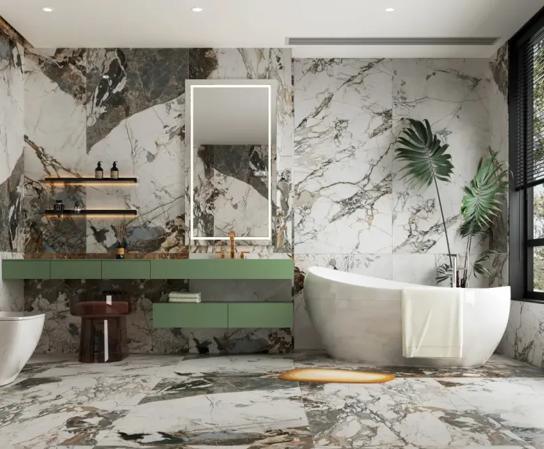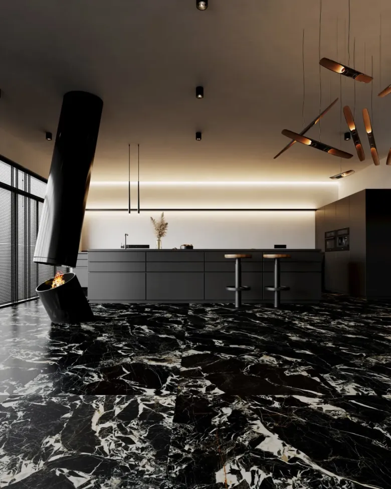 Napoleon Black, a classic and popular black and white collision, is impeccable in design, texture, and grade. Covering two major specifications of 900x1800mm/1200x1200mm, with varying sizes of root patterns, it is easy to create a space with a highly luxurious and luxurious atmosphere.