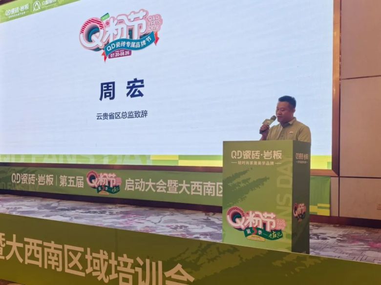 会议开场,QD瓷砖总部西南战区总监高猛以铿锵寄语锚定前进方向,他表示,这场启动会是品牌营销节的重要宣导,是业务能力的再提升,更是实战本领的再锤炼。一番激昂的讲话既给予在场经销商大步向前的激励与自信,也提出了第五届Q粉节工作的希冀。