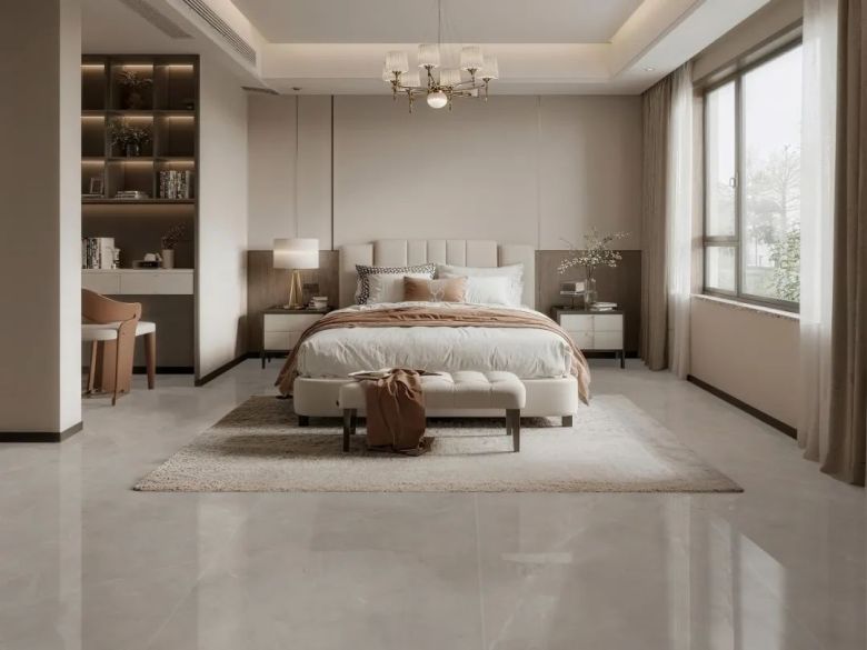 于卧室,触感细腻,光感柔和。光脚踩上去,是山石般的踏实与清凉;目之所及,是随光影流动的天然画意。光影流转间,似与自然同息,心境亦随之沉静。