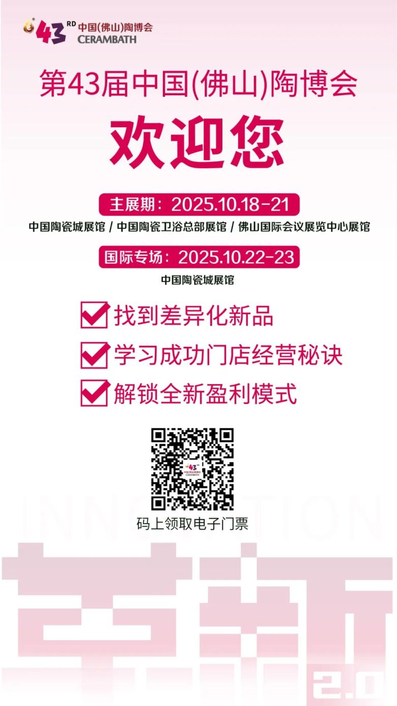 【展会门票】10月18-23日 第43届中国佛山陶博会,速领门票!轻松逛展,高效成交