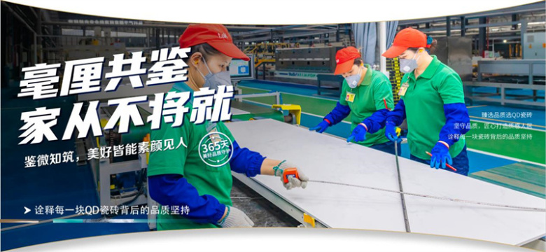QD瓷砖将精益求精的匠心注入每个环节,实行全生命周期品质监控,环环相扣,以超越5A标准的严苛,兑现消费者对更高品质的追求。