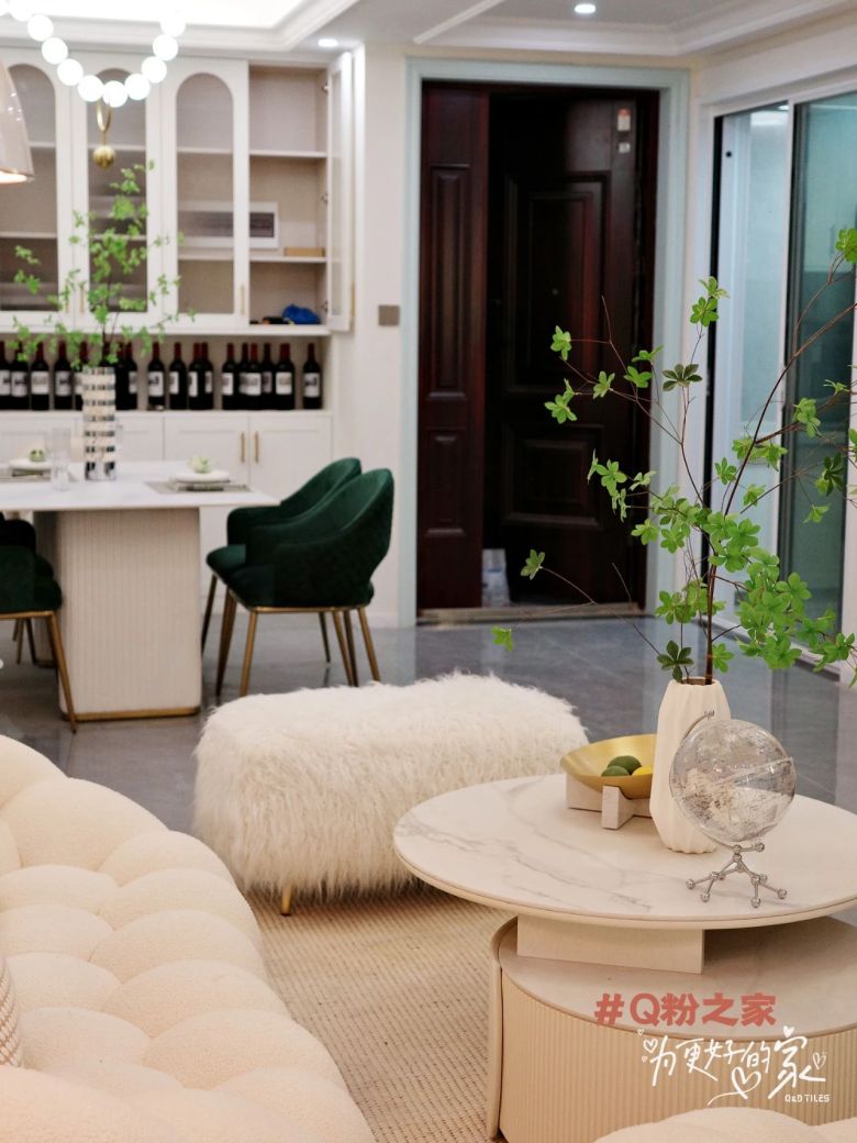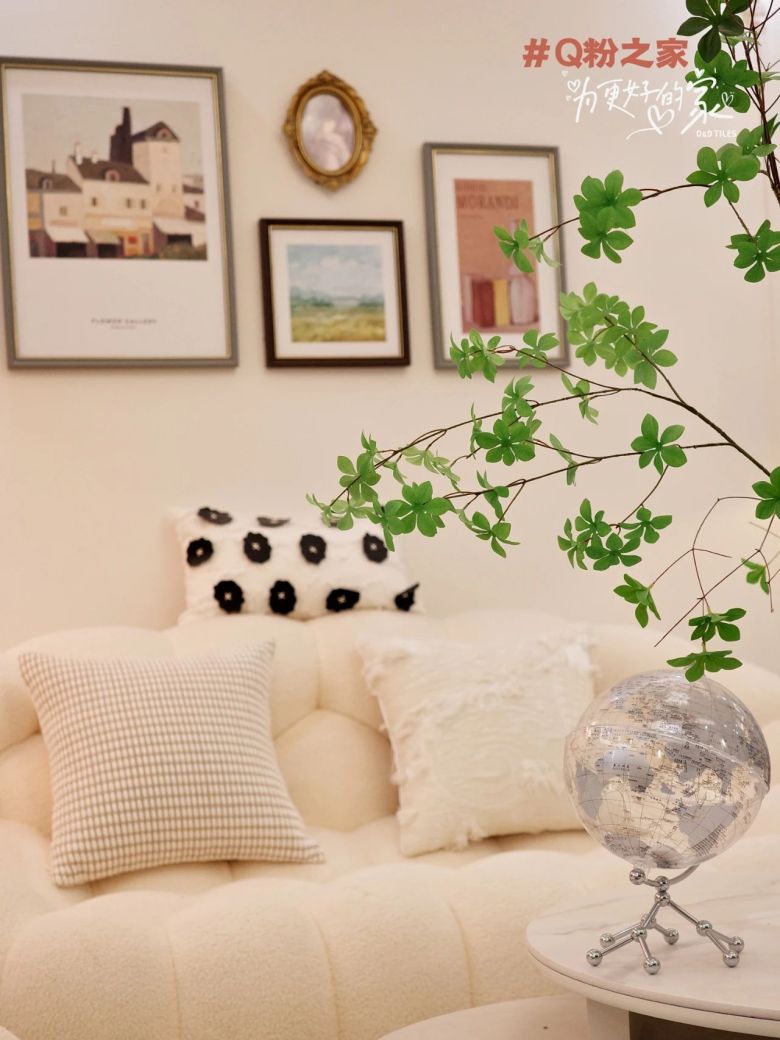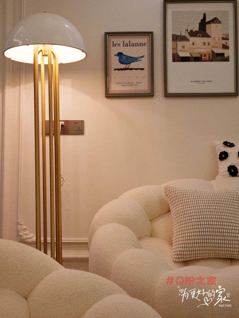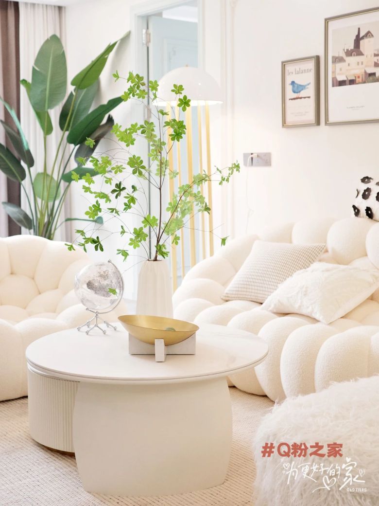 可爱又软萌的泡泡沙发简直就是客厅的一大亮点,散发着软糯的气息。搭配高级灰亮面砖,现代简约又轻奢的feel不就来了吗?