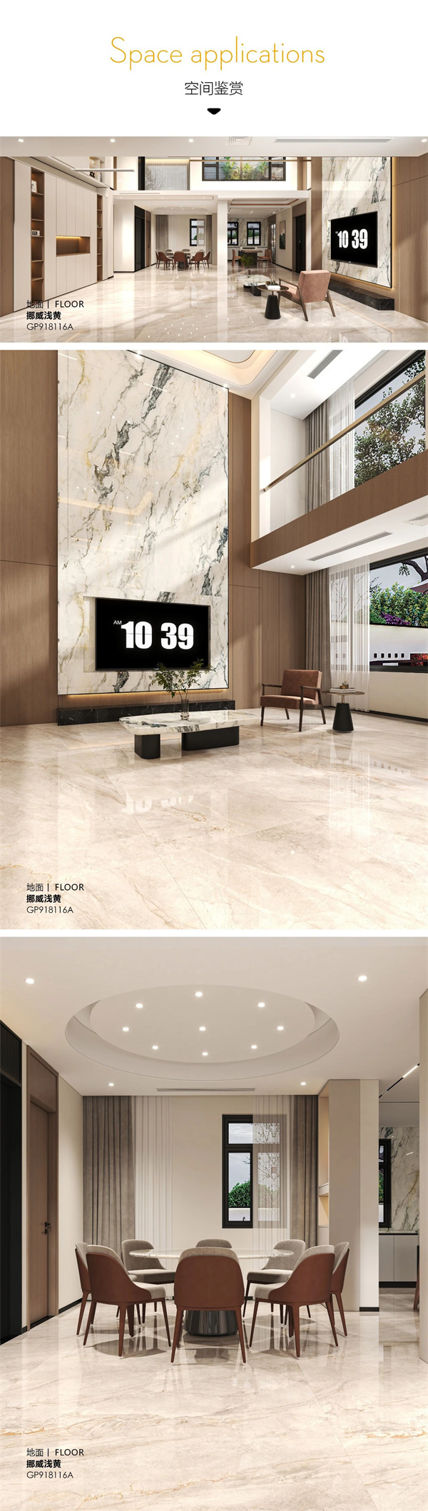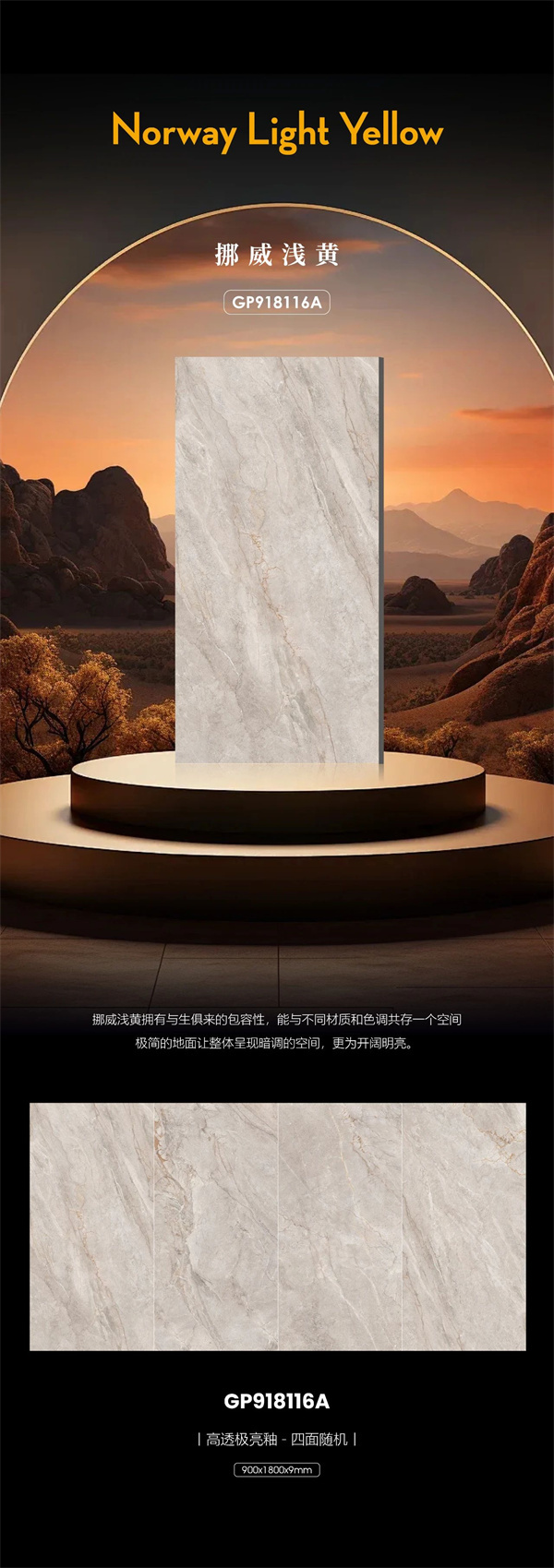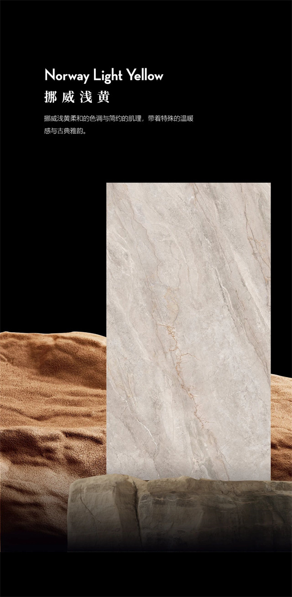 挪威浅黄拥有与生俱来的包容性,能与不同材质和色调共存一个空间,极简的地面让整体呈现暗调的空间,更为开阔明亮。