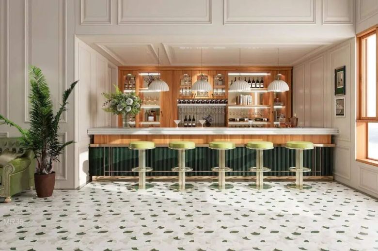 金巴利美拉德系列花砖将这种色彩哲学融入设计,通过暖色调的渐变与组合,为空间注入温暖、舒适的氛围。