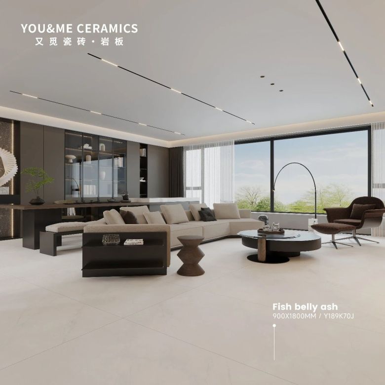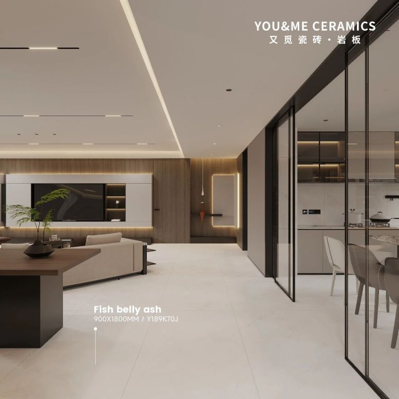 900x1800mm、750x1500mm与600x1200mm子母砖搭配,地面铺陈磅礴气势,墙面演绎细腻质感。同色系不同尺寸自由组合,无需设计师“凑花色”,一键实现全屋风格统一;