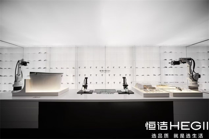 “恒洁H-SPACE”以空间业态作为表现重点,运用材料及技术的展示效果来传递品质本源的思考。原料橱窗将恒洁产品选用的优质土、木、石、金属等进行一一展示,引发观众思考品质之源;“一键旋钮”时光长廊,引领人们感受恒洁智能马桶迭代升级为行业带来的引领性价值沉淀;在“恒洁智能实验室”展区,以道具化手法展示的恒洁超凡R9智能一体机,领先的创新科技吸睛无数。通过艺术化的形式进行产品技术解构、可持续发展道具展示、智能交互场景体验等,“恒洁H-SPACE”让参展观众体验到“品质的源由,落于空间的美感”,从而更加理解恒洁“选品质,就是选生活”的品牌主张。